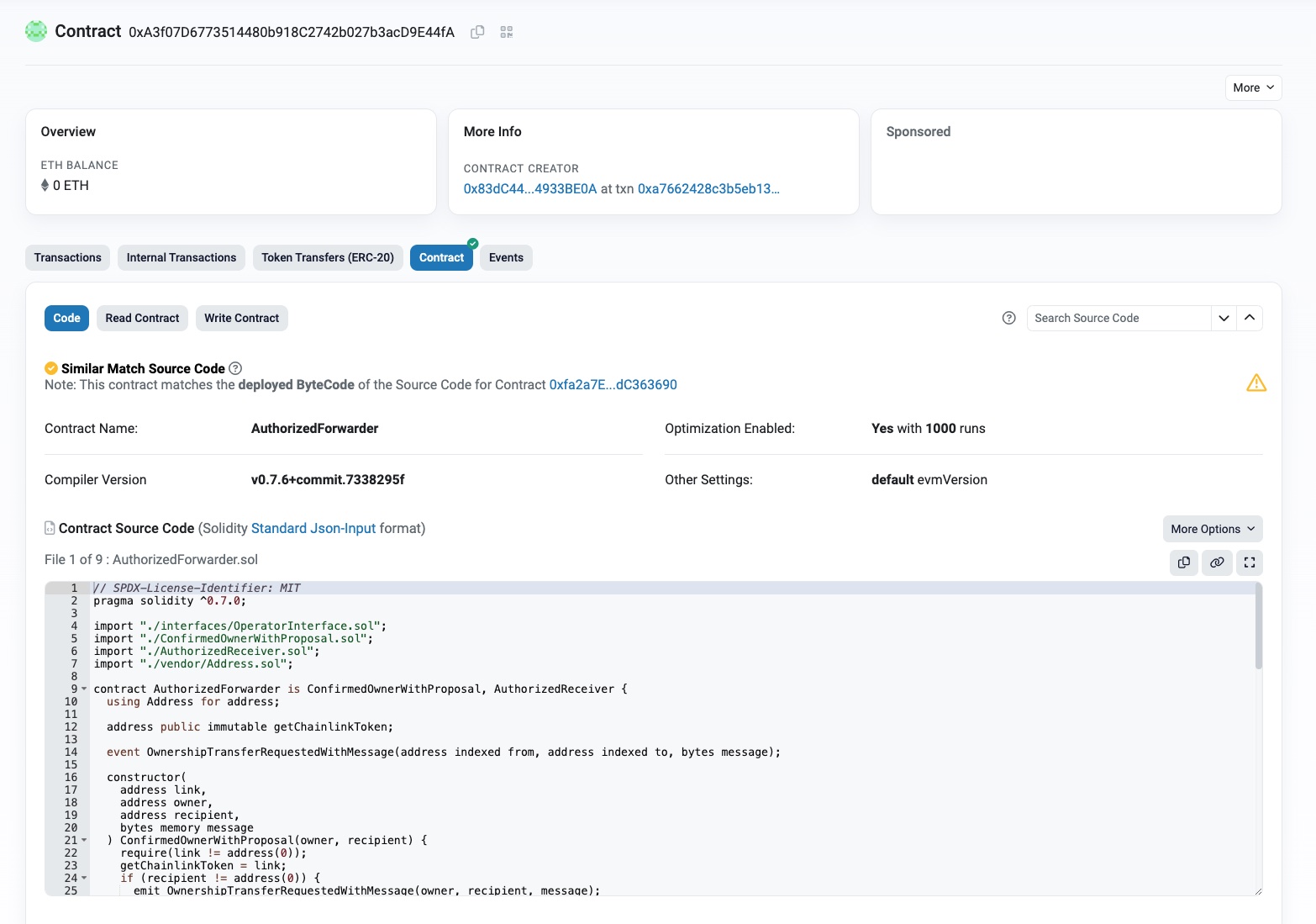 • The forwarder contract forwarded the callbacks to the operator contract.